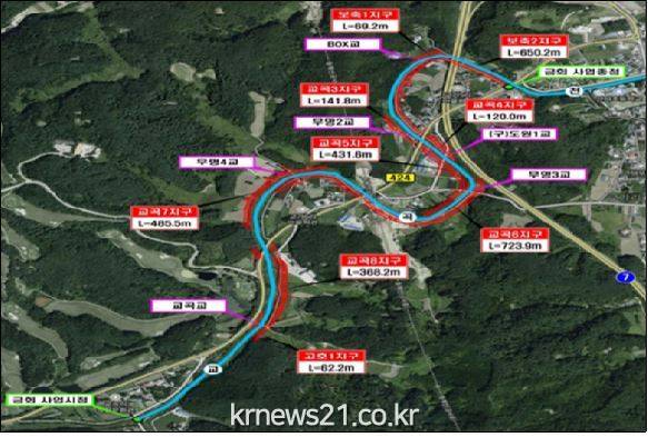 교곡천 일대는 하천 폭이 좁아 태풍이나 폭우 시 교량 범람, 침수 등 재해 발생의 위험이 있는 지역으로, 사업이 완료되면 교곡천 상류부~파인밸리옆 구간은 하폭이 36.2m에서 37m로, 교곡천 중류부~교가6리 구간은 하폭이 15.9m에서 40.5m로, 교곡천 하류부~교가5리 구간은 하폭이 33m에서 40m로 늘어나 재해 예방 효과가 클 것으로 기대된다.