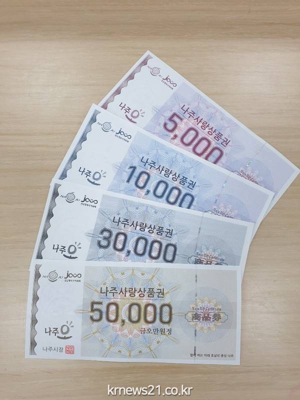 나주사랑상품권은 ‘지류형’, ‘카드형’으로 발행하며 개인당 월 구매 한도는 50만원이다.