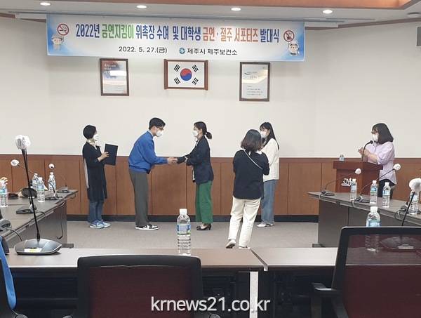 ▲ 사진=제주시제주보건소(소장 이민철)는 5월 27일, 지역사회 금연․절주 환경 조성을 위한 금연지킴이 위촉식 및 대학생 금연․절주 서포터즈(이하 서포터즈) 발대식을 개최했다.