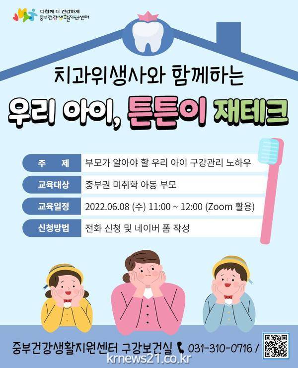 중부건강생활지원센터 관계자는 “다양한 구강교육 사업을 통해 중부권 지역주민이 건강한 치아를 가질 수 있도록 노력하겠다”고 전했다.