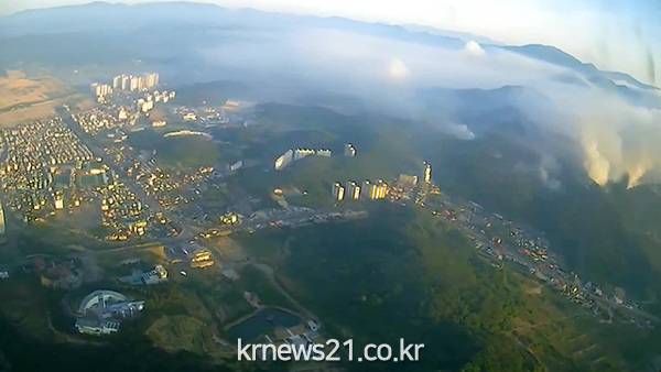 산림 당국은 산불의 열기로 바람 방향이 수시로 바뀌고 돌풍이 우려되는 상황이라고 설명했다.