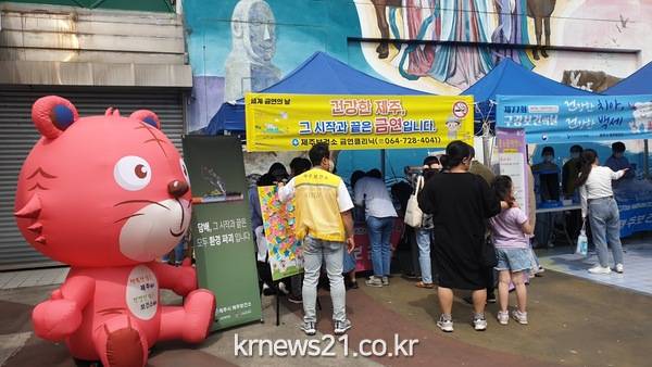세계 금연의 날(5월 31일)은 세계보건기구(WHO)가 담배 연기 없는 사회를 만들기 위해 지정한 날로, 제주보건소는 매년 건강홍보관 운영 및 캠페인을 전개하고 있다.