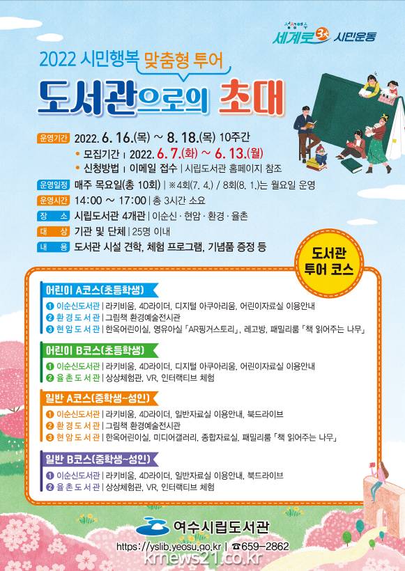 ▲ 사진=여수시여수시립도서관이 6월 16일부터 8월 18일까지 맞춤형 도서관 투어 프로그램 ‘도서관으로의 초대’를 운영한다.