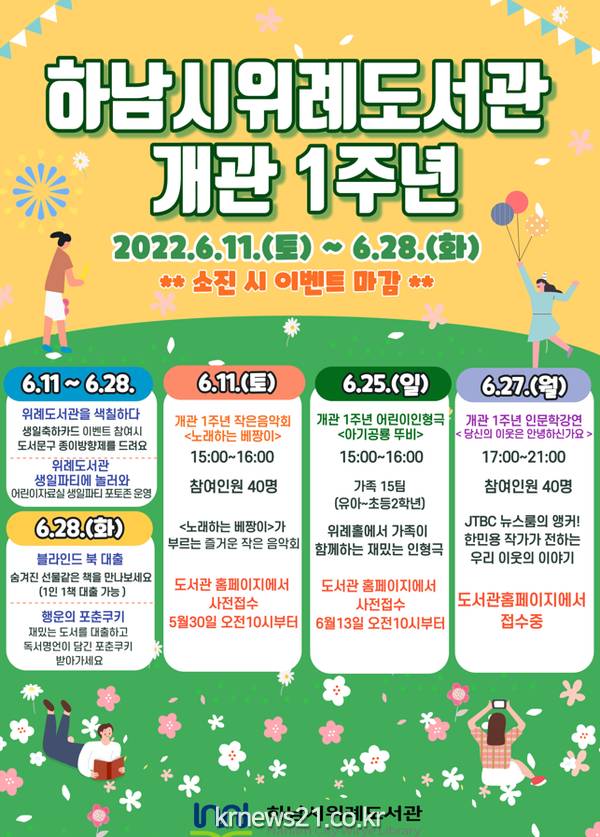 하남시위례도서관이 개관 1주년을 맞아 시민들과 함께 축하하고 즐길 수 있는 다양한 독서문화 행사를 운영한다.