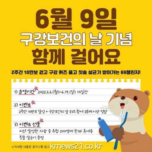 시는 6월 6일부터 오는 19일까지 모바일 걷기 앱을 활용한 ‘함께 걸어요. 69챌린지 및 구강보건의 날 홍보캠페인’을 진행한다.