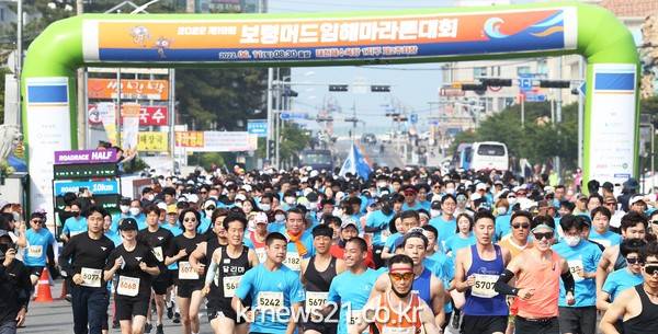 제19회 보령머드 임해마라톤대회가 11일 대천해수욕장 일원에서 시민과 전국 각지에서 모인 마라톤 동호회원 등 3600여 명이 참가한 가운데 성황리에 열렸다.