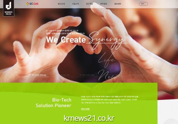 ▲ 사진=지씨셀GC셀(대표 박대우)은 자사의 공식 홈페이지가 ‘2022 굿디자인웹 디자인 어워즈(GDWEB Design Awards)’에서 제조 부문 위너프라이즈를 수상했다고 밝혔다.