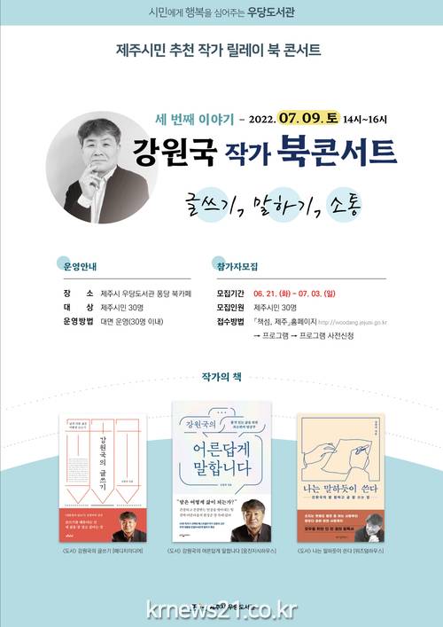 ▲ 사진=제주시제주시 우당도서관(관장 김철용)에서는 책과 함께 소통하고 공감하며 시민들의 일상 회복을 돕기 위한 ‘제주시민 추천 릴레이 북 콘서트’를 운영한다고 밝혔다.