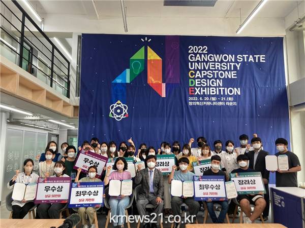 ▲ 사진=강원도청강원도립대학교(총장 전찬환) 2022학년도 캡스톤디자인 경진대회가 21일 오후 2시 심도식 기획홍보처장과 학생 등 100여 명이 참석한 가운데 대학 창의혁신커뮤니티센터에서 열렸다.