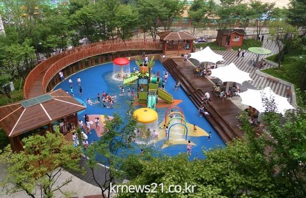 공원 내 물놀이장은 집과 가까운 곳에 위치하고, 이용 요금이 없어 주민들에게 인기가 높다. 구는 동네 공원에서 언제든지 물놀이를 즐길 수 있도록 물놀이 시설을 마련했지만, 코로나로 2년간 개장하지 못하다가 올해 6월 재개장하기로 했다.