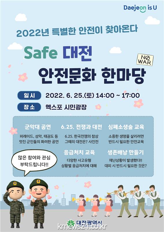 ▲ 사진=대전광역시대전시는 오는 6월 25일 토요일 오후 2시부터 5시까지 엑스포 시민광장에서‘6.25전쟁과 안전’이라는 주제로‘세이프(Safe)대전 안전문화 한마당’을 개최한다.
