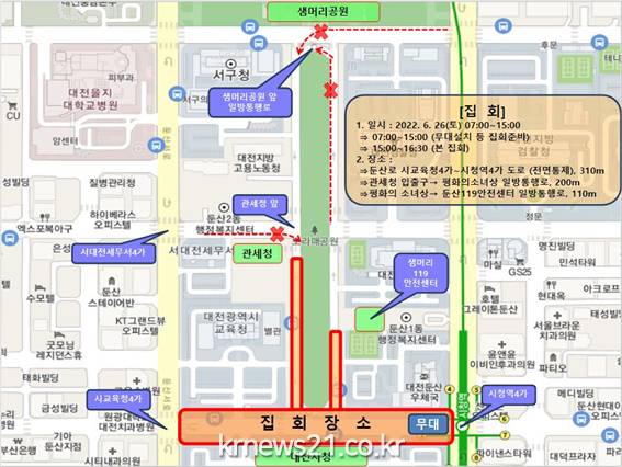 ▲ 사진=대전광역시대전시는 오는 26일 시청 인근에서 대규모 집회가 신고됨에따라 시민 불편을 최소화하고자 집회당일인 26일 시청 일대를 통과하는 10개 시내버스 노선을 변경하여 우회 운행할 계획이라고 밝혔다.