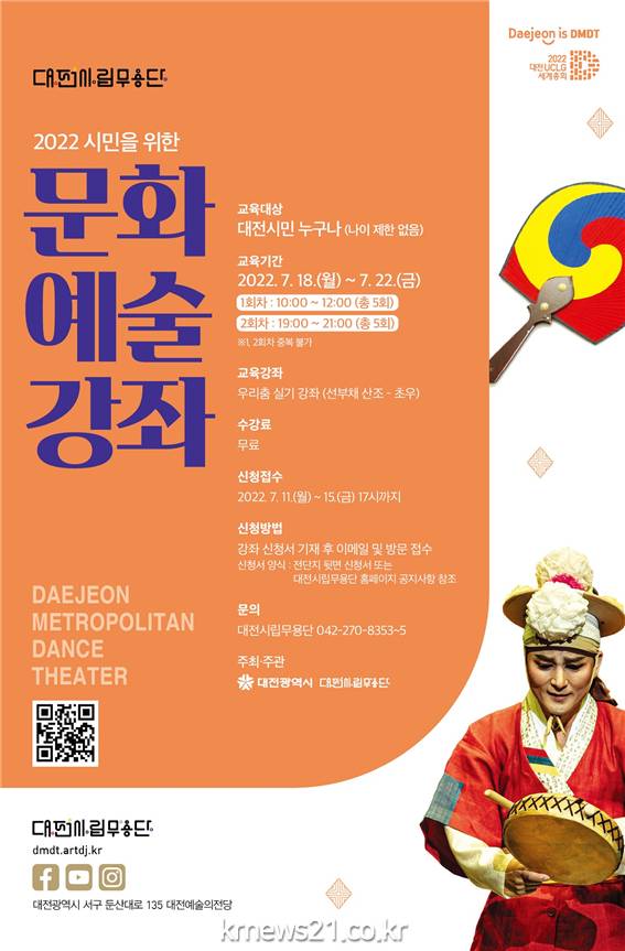 ▲ 사진=대전광역시대전시립무용단은 오는 7월 18일(월)부터 22일(금)까지 5일간 무용단 연습실에서 시민을 위한 문화예술 강좌를 개최한다고 밝혔다.