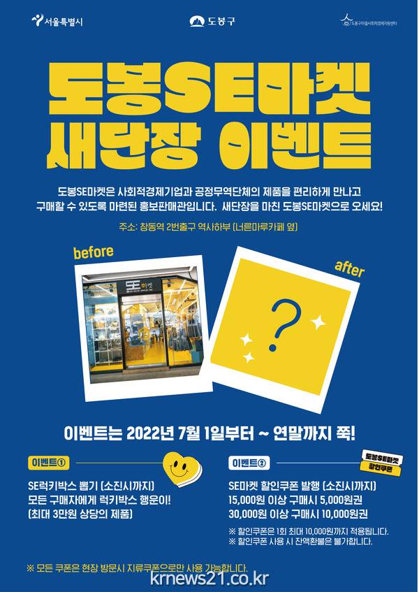 ▲ 사진=도봉구도봉구(구청장 이동진) 마을사회적경제지원센터는 구민의 사회적경제 공감대를 넓히고, 지역 사회적경제기업의 판로를 확대하기 위해 7월 1일부터 14일까지 2주간 「2022 도봉구 사회적경제 주간행사」를 온오프라인으로 진행한다.