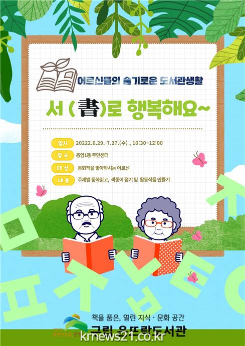 은뜨락도서관 관계자는 “올해 프로그램은 일상회복을 맞아 연계기관과 협력하며 동아리 결성을 목표로 하고 있다”며 “어르신들이 책으로 힐링하고 어르신 간 소통으로 정서적 안정에 도움 되길 바란다”고 말했다.