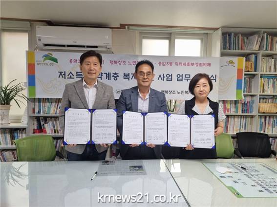 ▲ 사진=은평구청은평구(구청장 김미경) 응암3동은 지역사회보장협의체, 행복창조 노인복지센터와 지역 저소득 취약계층의 복지증진을 위한 업무협약을 지난 24일 체결했다.