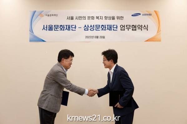 ▲ 사진=서울문화재단서울문화재단(대표이사 이창기)이 6월 29일(수) 오후 2시 리움미술관에서 삼성문화재단(대표이사 류문형)과 문화소외계층의 문화향유 기회를 확대하기 위한 업무협약(MOU)을 체결했다고 1일 밝혔다.