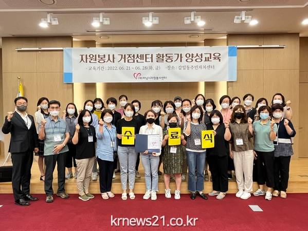 (재)하남시자원봉사센터는 지난 28일 감일동주민자치센터에서 교육생 36명이 참여한 가운데 ‘자원봉사 거점센터 활동가 양성교육’ 수료식을 가졌다.