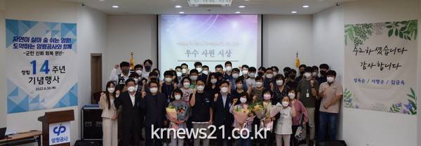 ▲ 사진=양평군지방공기업 양평공사(사장 강병국)가 제14주년 창립기념일을 맞아 직원들과 함께 기념식을 진행했다.
