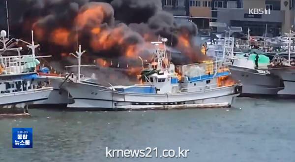 ▲ 사진=KBS NEWS 캡처어제 제주에선 정박 중이던 어선에서 원인이 밝혀지지 않은 불이나 인근 2척으로 옮겨 붙었다.