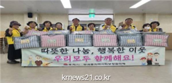 ▲ 사진=동해시부곡동지역사회보장협의체(민간위원장 김선균, 공공위원장 송영애)에서 지난 6일 여름철 폭염에 대비해 『시원한 여름나기! 여름이불 지원 사업』을 펼쳤다.