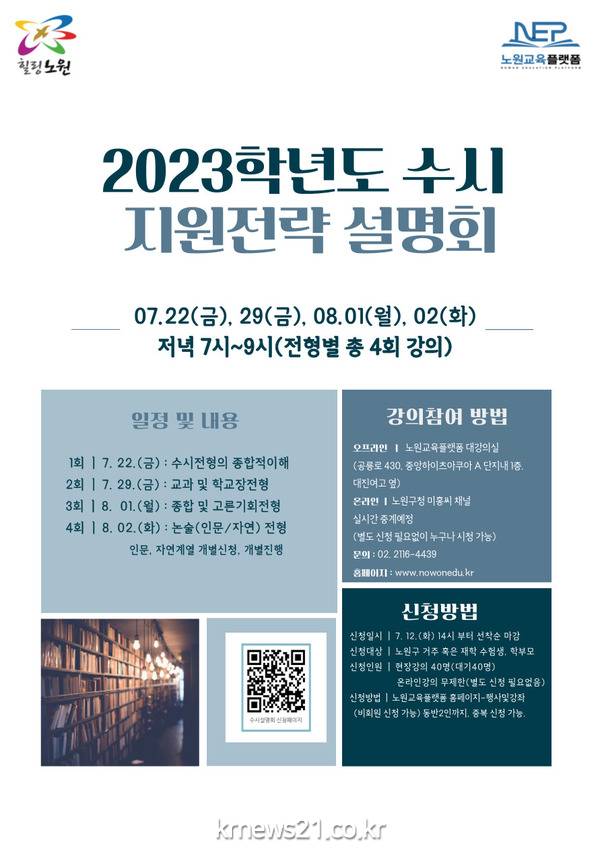 ▲ 사진=노원구서울 노원구(구청장 오승록)가 2023학년도 수시 원서접수를 앞둔 수험생과 학부모를 위해 수시지원전략 설명회를 연다고 밝혔다.