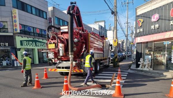 ▲ 사진=제주시제주시는 장마, 태풍 등 여름철 집중호우 시 하수관거 역류에 따른 침수피해를 최소화하기 위해 관내 하수관거 준설 및 정비사업을 추진 중이다.