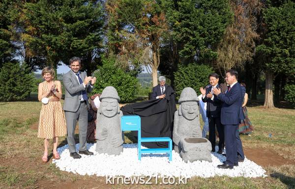 이번 제주 상징물 설치 기념행사는 지난해 6월 문재인 대통령 스페인 순방을 계기로 한국과 스페인 간 관광교류 활성화에 목적을 둔 협력사업의 일환으로 마련됐다.