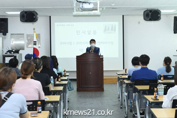 ▲ 사진=구리시청사단법인 구리시자원봉사센터(이사장 백경현)는 12일 구리시행정복지센터 2층 다목적실에서 2022년도 제2차 자원봉사 수요처 관리자 보수교육을 개최했다.