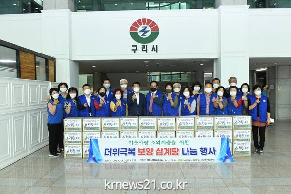 ▲ 사진=구리시청구리시(시장 백경현)는 12일 구리시청 2층 로비에서 바르게살기운동 구리시협의회(회장 김병연)가 주관하고 상대유통(주)의 협찬으로 「초복 맞이 삼계탕 600마리 나눔 행사」를 진행하였다.
