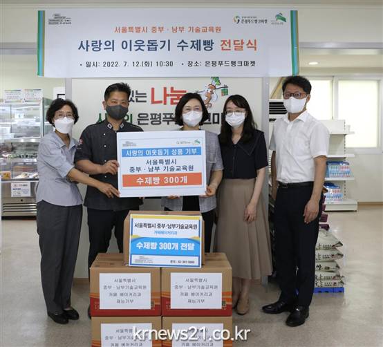 황의청 중부·남부기술교육원 카페베이커리 교수는 “교육생이 직접 만든 수제빵을 은평구 이웃에게 전달할 수 있게 되어 기쁘다”며 “앞으로도 재능기부를 통해 지역 사회에 자그마한 보탬이 되고 싶다”고 전했다.