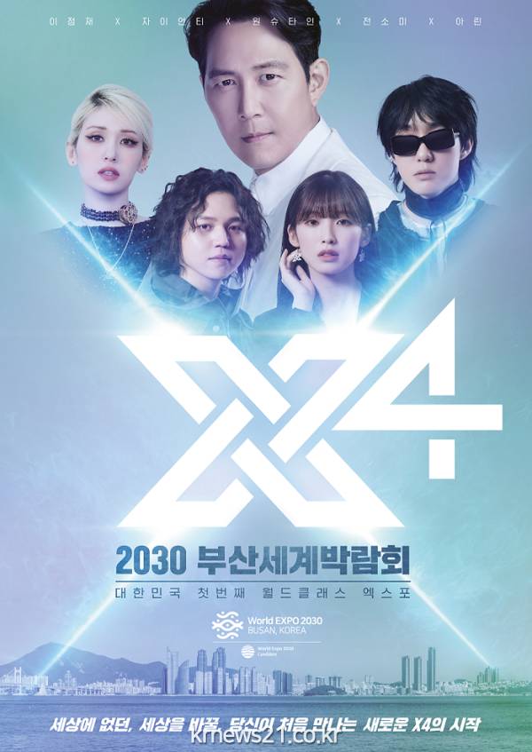 이번 광고의 세계관은 X4 세계관으로, 세상에 없던 엑스포 유치를 위해 이정재 씨가 X4엔터테인먼트를 설립하고 자이언티, 원슈타인, 전소미, 아린으로 X4 그룹을 만들어 다양한 홍보활동을 전개해 결국 2030부산세계박람회 유치에 성공한다는 내용이다.