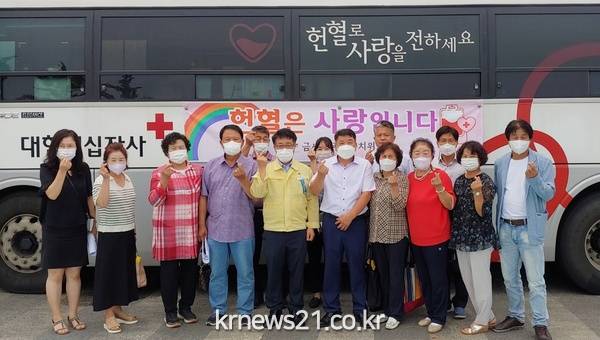 ▲ 사진=여주시금사면 주민자치위원회(위원장 윤태록)는 지난 12일 이포권역행복센터 주차장에 위치한 대한적십자사 이동 헌혈 버스에서 헌혈 행사를 개최했다.