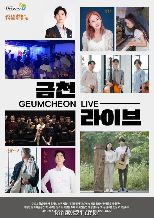 지난해 시범사업으로 시행한 ‘금천라이브’는 금천구를 포함해 서울 서남권 지역에서 활동하고 있는 예술가를 발굴해 영상 등 온라인 콘텐츠 제작 활동을 지원하는 사업이다. 코로나19로 대면 공연이 어려워짐에 따라 비대면 방식으로 예술가가 창작 활동을 지속할 수 있도록 기획했다.