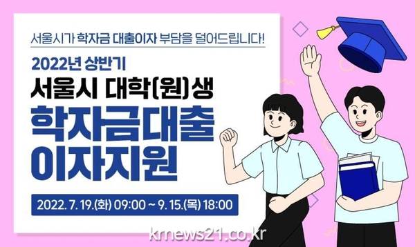 서울시는 '2022년 상반기 학자금대출 이자 지원' 신청을 9월 15일까지 받는다고 19일 밝혔다.