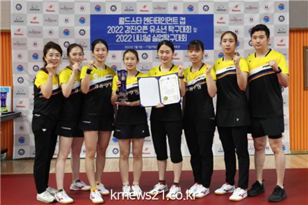 ▲ 사진=강동구강동구(구청장 이수희)는 지난 12일부터 15일까지 전남 강진 제2실내체육관에서 열린 ‘2022. 내셔널 한국실업탁구대회’에서 강동구청 여자탁구단이 단체전 준우승의 쾌거를 이뤘다.