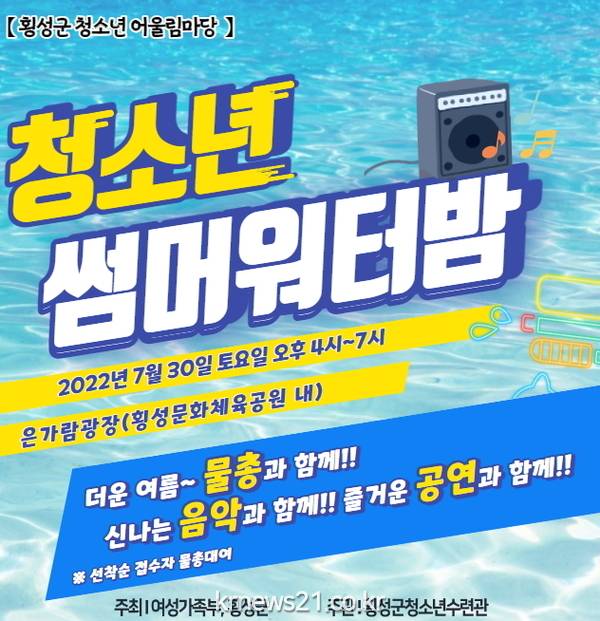 ▲ 사진=횡성군횡성군청소년수련관은 오는 30일 오후 4시, 2022년 횡성군청소년어울림마당 1회기 ‘청소년 썸머워터밤’을 횡성문화체육공원 은가람광장에서 개최한다고 밝혔다.