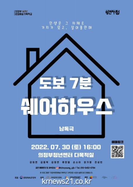 한편 이번 낭독극은 문화체육관광부가 주최, 지역문화진흥원과 의정부문화재단이 주관인 지역전문인력양성과정 ‘2022 의정부 문화예술기획학교’를 통해 진행한다. 누구나 관람할 수 있으며, 관람료는 무료다.