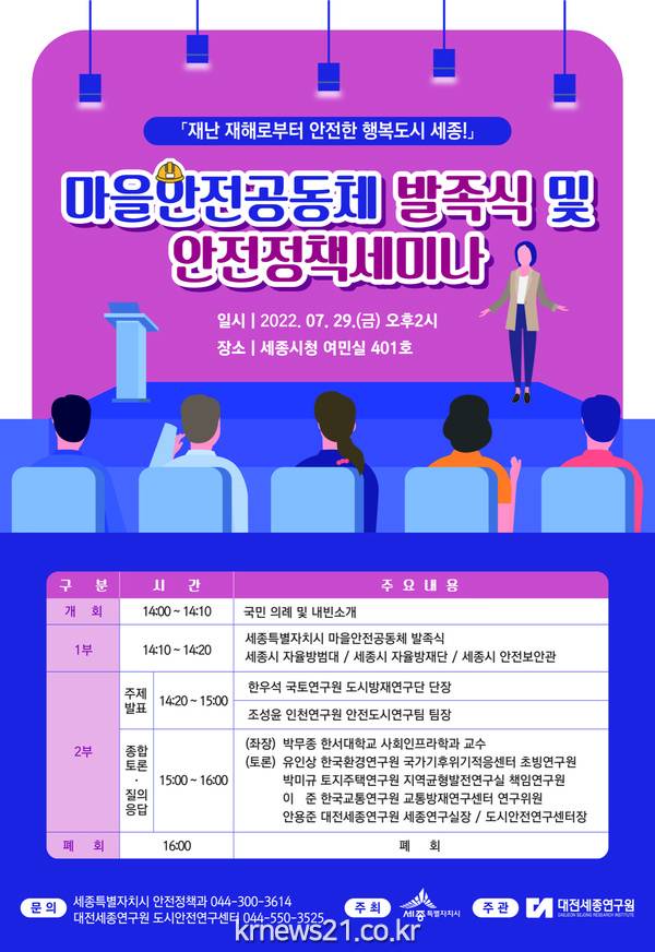 시는 29일 시청 여민실에서 ‘마을안전공동체 발족식’과 ‘재난·재해로부터 안전한 행복도시 세종을 위한 세미나’를 연계 진행했다.