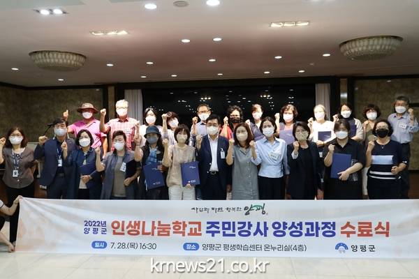 ▲ 사진=양평군앙평군(군수 전진선)은 지난 28일 평생학습센터 온누리실(4층)에서 재능있는 주민에게 강사 역량을 키워주는 과정인 ‘인생나눔학교 주민강사 양성과정’을 운영하고 수료식을 마쳤다고 밝혔다.