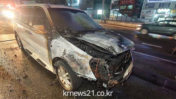 불은 차량 전면부를 태운 뒤, 15분 만에 꺼졌다.