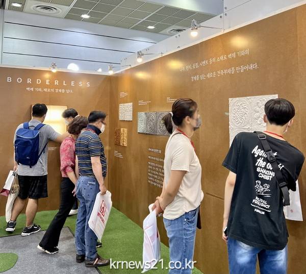 ▲ 사진=부여군부여 백제기와문화관이 ‘2022 코리아빌드위크 건축박람회’에서 ‘백제기와 재료의 경계를 넘다’라는 주제로 백제전돌 개발 제품을 선보였다.