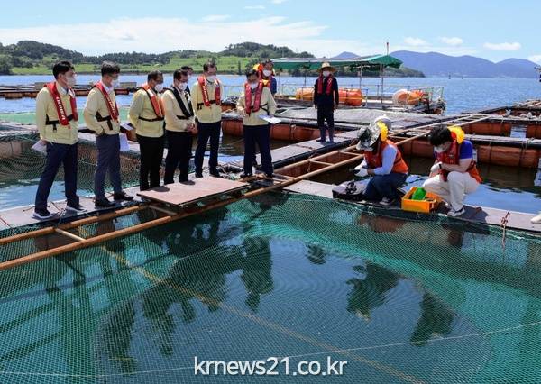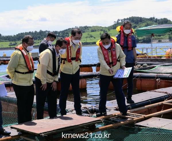 조 장관은 이날 월호동 인근 가두리양식장에서 해수온과 양식장 상태 등을 점검하고 어업인들의 건의사항을 청취했다.