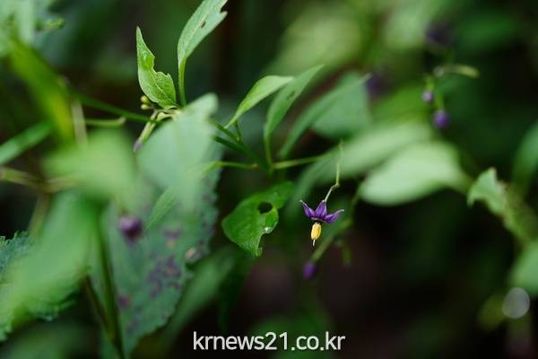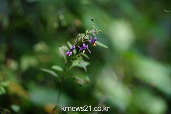 산꽈리라고도 한다. 산지에서 자란다. 가지가 갈라지고 윗부분이 덩굴성이며 털이 거의 없다. 꽃은 6월에 피고 연한 자줏빛이지만 중앙부가 녹색이고 꽃이삭은 마디 사이에서 나와서 꽃이 드문드문 달린다. 화관(花冠)은 깊게 5개로 갈라져서 젖혀지고 열매는 장과(漿果)로 둥글며 적색으로 익는다. 한국·일본 등지에 분포한다.