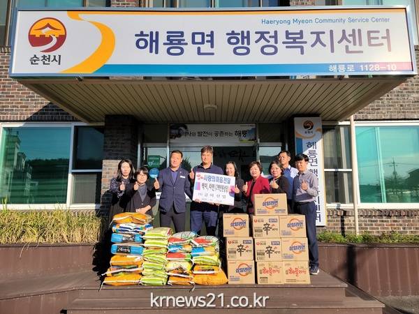 지난 7일 순천시 해룡면 도롱리 소재 (주)금마산업(대표 김정도)에서 지역 어려운 이웃들에게 전달해 달라며 해룡면행정복지센터에 2백만 원 상당의 백미 350㎏과 라면 10박스를 기탁했다.