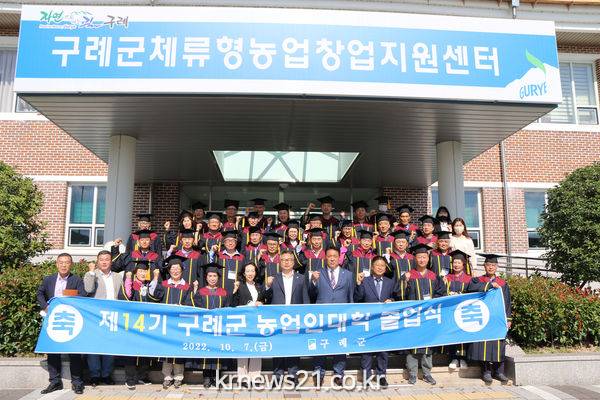 전남 구례군은 지역 농업발전과 전문 농업인 인력양성을 위해 운영한 제14기 구례군 농업인대학 졸업식을 지난 7일 체류형농업창업지원센터 대강당에서 개최했다.