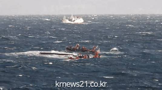 해경은 경비함정을 급파해 인근을 수색한 결과 오전 5시쯤 어선이 뒤집혀 있는 것을 발견했다.