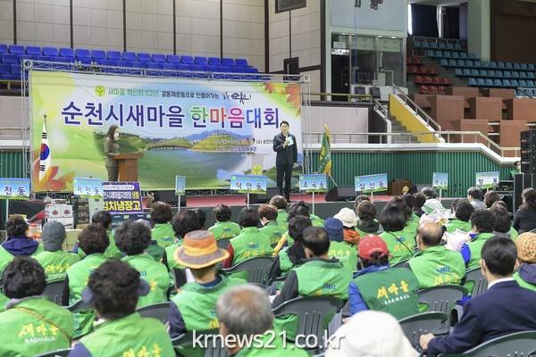 순천시 새마을회(회장 김동철)가 지난 19일 팔마실내체육관에서 2022년 순천시 새마을 한마음 행사를 성황리에 개최했다고 밝혔다.