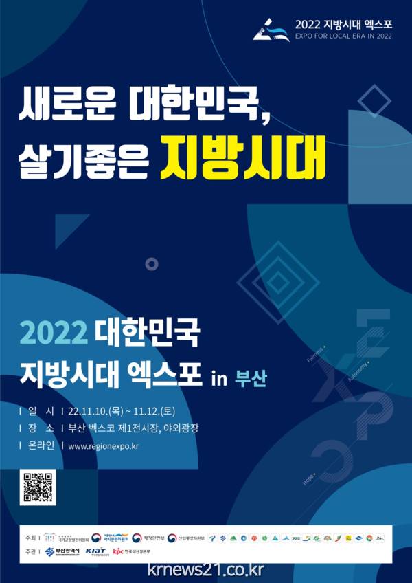 ▲ 사진=부산광역시부산시(시장 박형준)는 11월 10일부터 11월 12일까지 3일간 벡스코에서 「2022 대한민국 지방시대 엑스포 in 부산’(슬로건 : 새로운 대한민국, 살기 좋은 지방시대) 행사를 개최한다고 밝혔다. 개막식에는 박형준 시장을 비롯한 전국 시·도지사와 정부 주요 인사 등이 대거 참석할 예정이다.