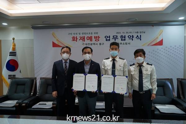 대전동부소방서는 26일 대전광역시 동구와 취약시설 화재예방 상호협력을 위한 업무협약을 체결했다고 밝혔다.